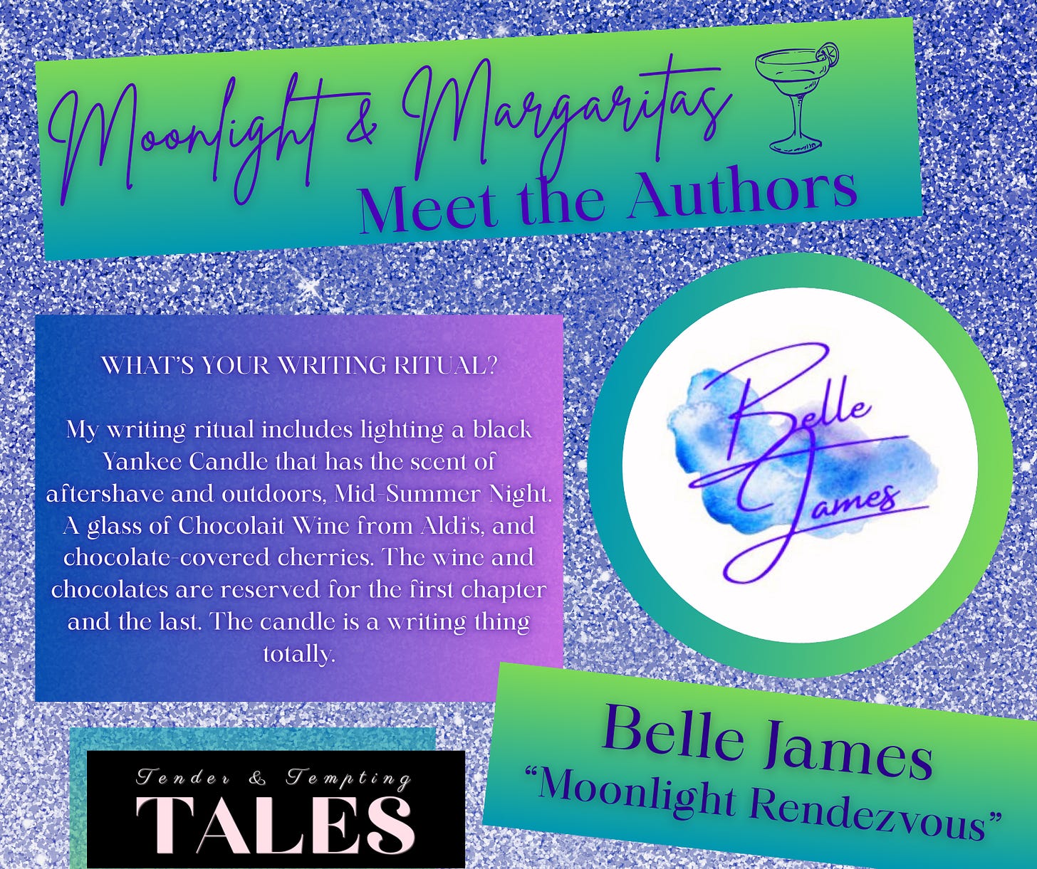 Belle appeared in our first summer anthology, Moonlight and Margaritas, with her story of nomadic love in the desert, “Moonlight Rendezvous.”